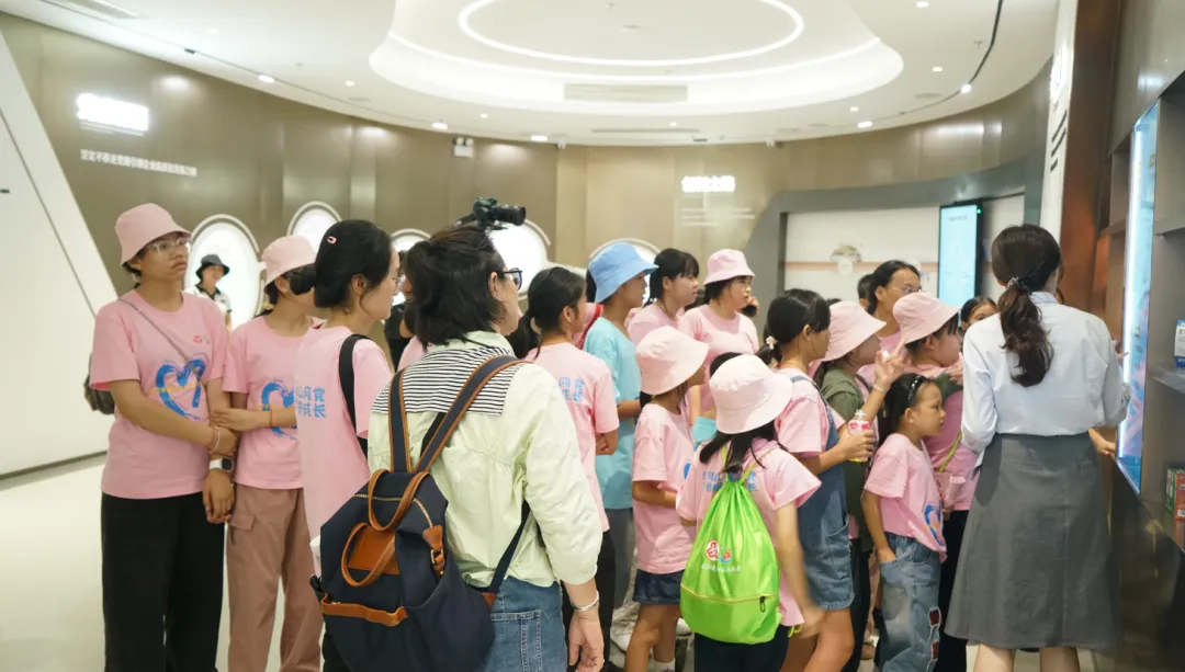 紧接着,孩子们来到了建党百年庆典红旗——070号红旗前。讲解员讲述了PG药业集团与庆典红旗的深厚渊源。孩子们听得津津有味,眼中闪烁着对党和国家的热爱与敬仰。
